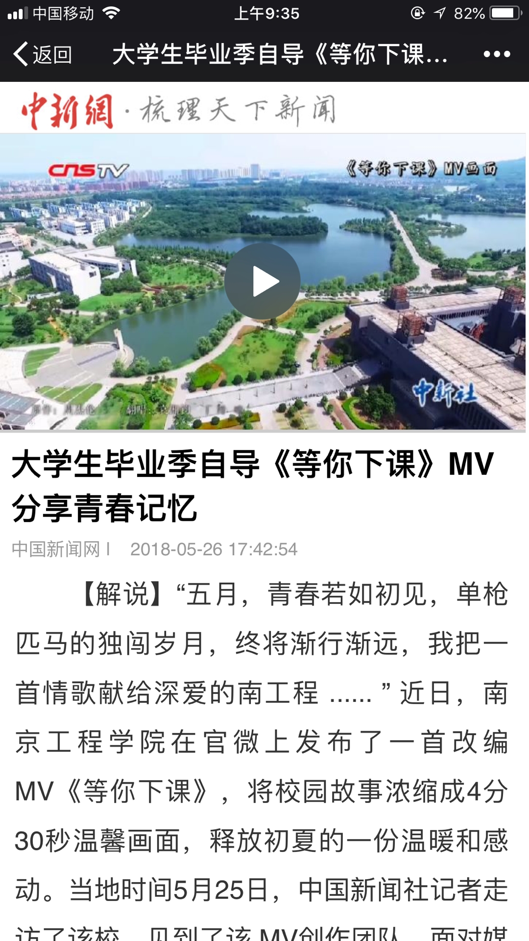 【解说】“五月,青春若如初见,单枪匹马的独闯岁月,终将渐行渐远,我把一首情歌献给深爱的南工程 ...... ” 近日,凯发k8官网在官微上发布了一首改编 MV《等你下课》,将校园故事浓缩成4分30秒温馨画面,释放初夏的一份温暖和感动。当地时间5月25日,中国新闻社记者走访了该校,见到了该 MV创作团队。面对媒体的镜头,主创人员讲述了创作初衷,分享心得。